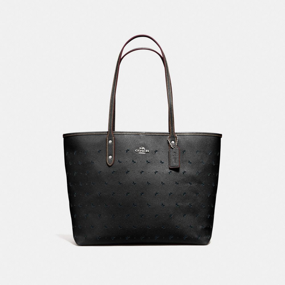 COACH F59345 - CITY TOTE IN PERFORATED CROSSGRAIN LEATHER - SILVER/BLACK - HANDBAGS