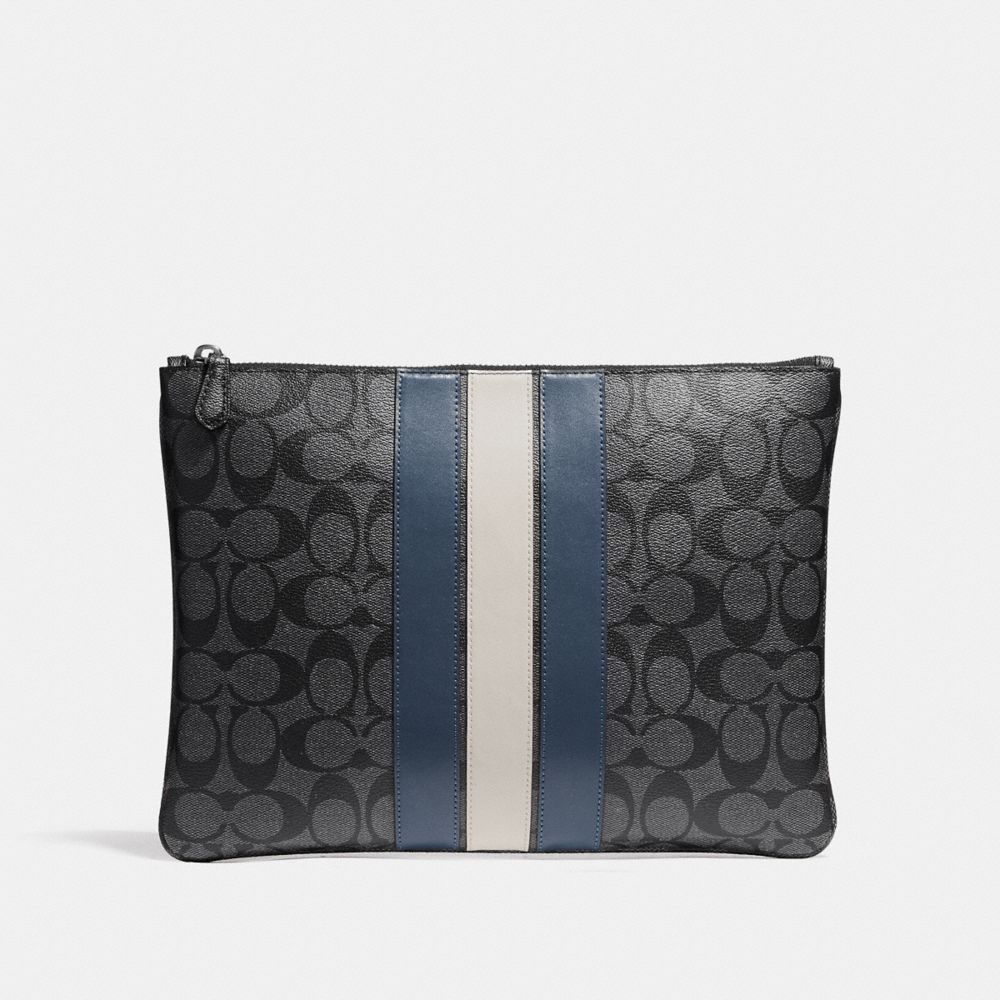 1. COACH f26071 - LARGE POUCH IN SIGNATURE CANVAS WITH VARSITY STRIPE - MIDNIGHT NVY/DENIM/CHALK