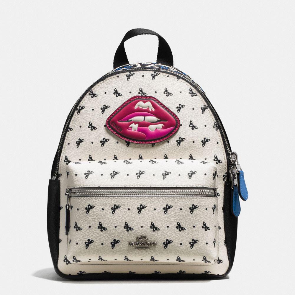 COACH F59330 MINI CHARLIE BACKPACK IN BUTTERFLY BANDANA PRINT COATED CANVAS SILVER/BLACK-LAPIS HANDBAGS