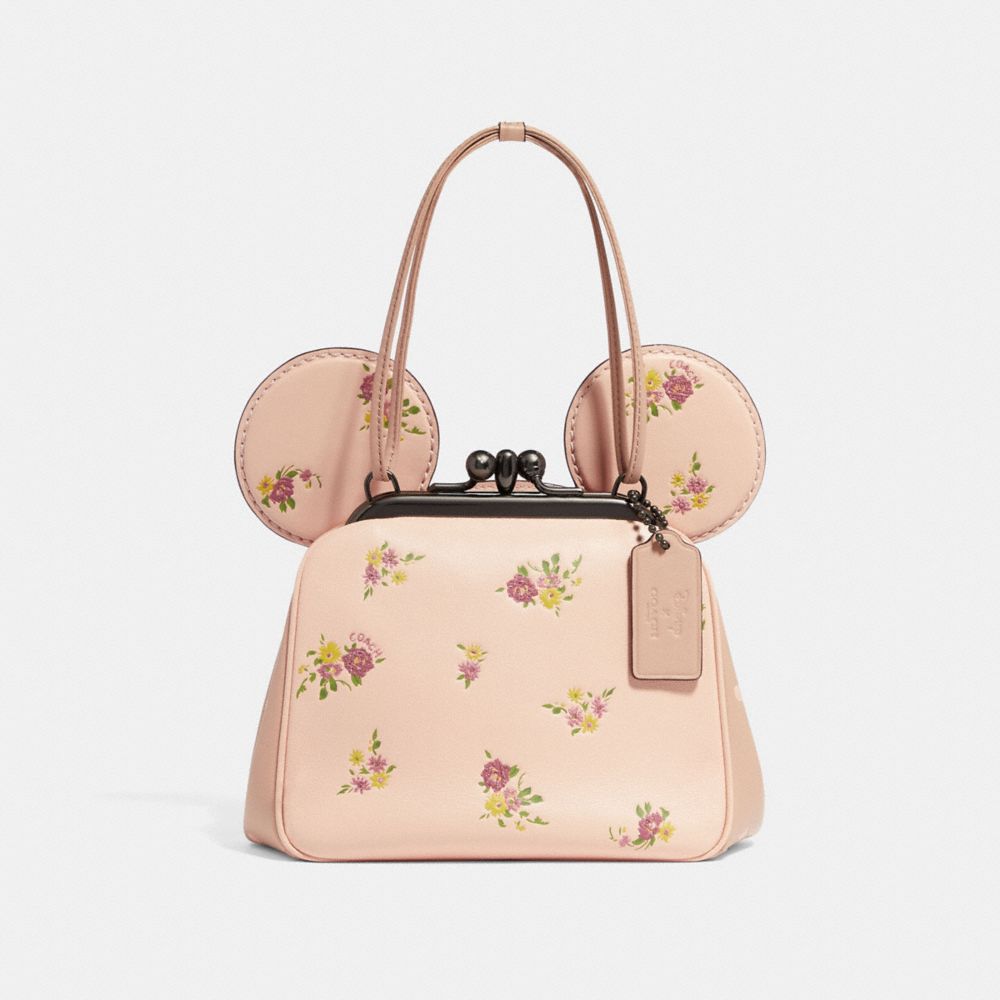1. COACH f29351 - KISSLOCK BAG WITH FLORAL MIX PRINT AND MINNIE MOUSE EARS - VINTAGE PINK MULTI/LIGHT GOLD