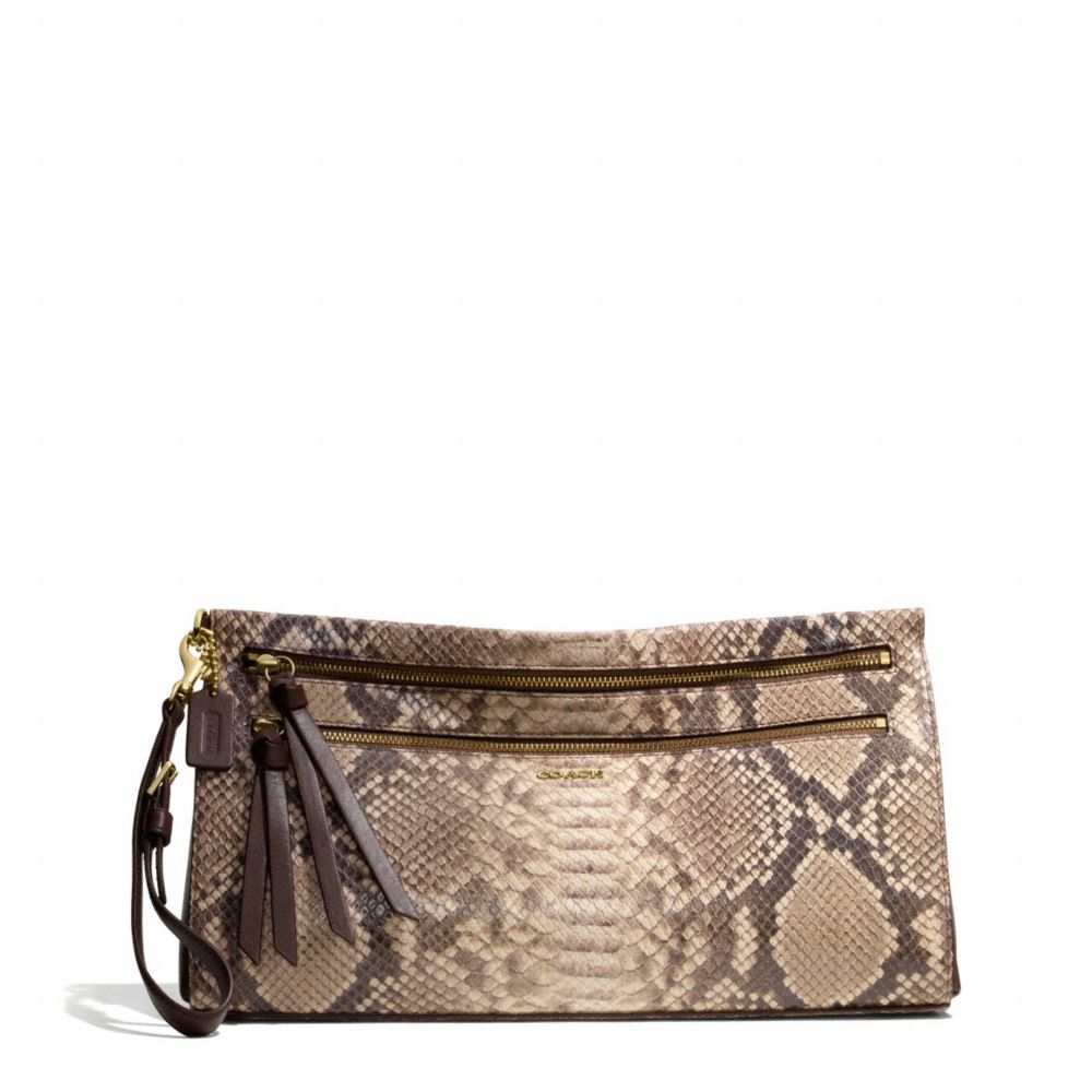 COACH F51141 MADISON PYTHON EMBOSSED LARGE CLUTCH LIGHT-GOLD/BROWN-MULTI HANDBAGS