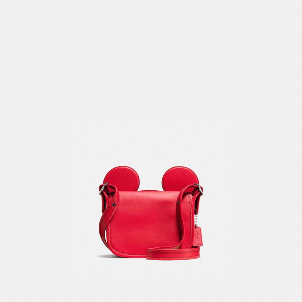 COACH F59369 - PATRICIA SADDLE IN GLOVE CALF LEATHER WITH MICKEY EARS - BLACK-ANTIQUE-NICKEL/BRIGHT-RED - HANDBAGS