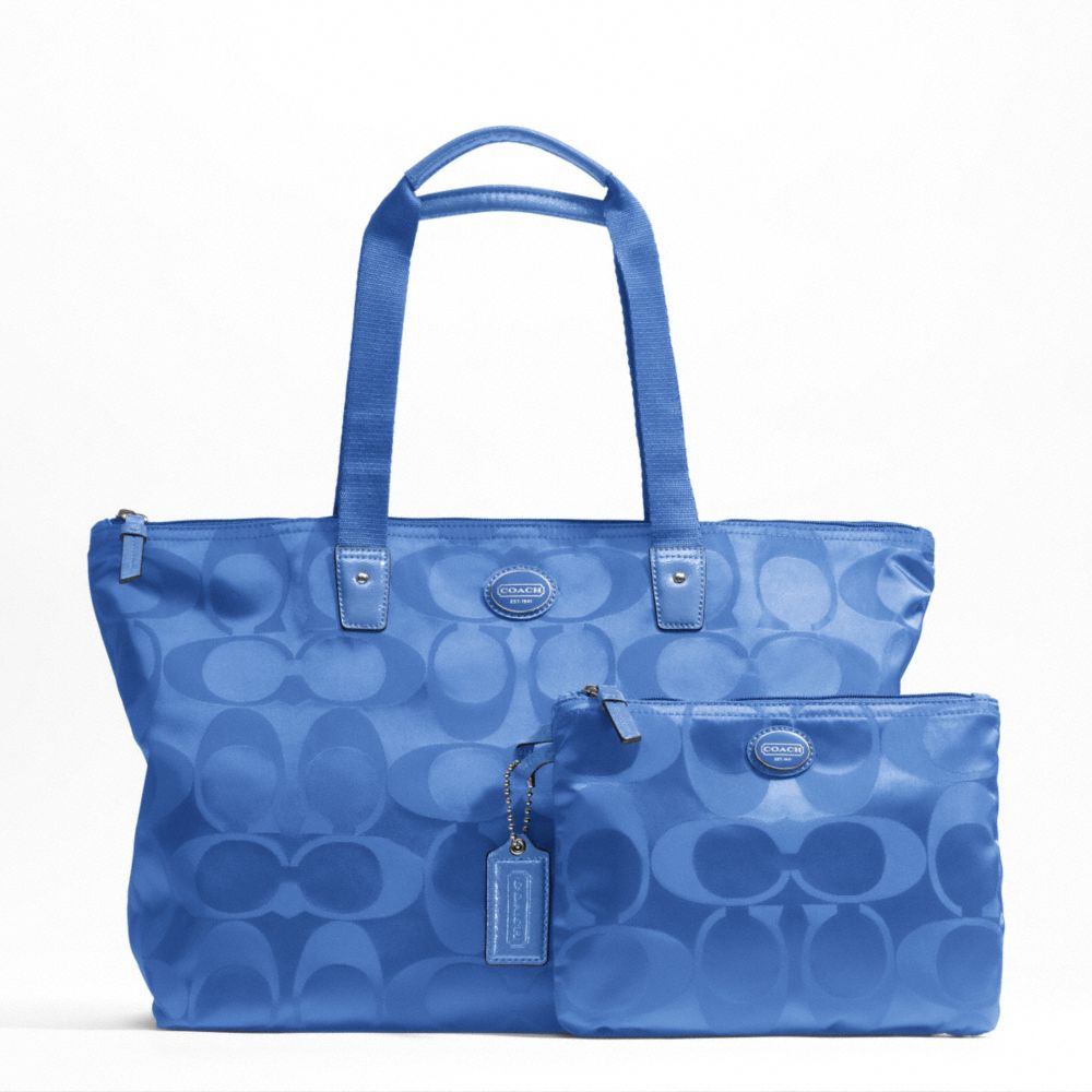 COACH F77321 GETAWAY SIGNATURE NYLON PACKABLE WEEKENDER SILVER/COOL-BLUE HANDBAGS