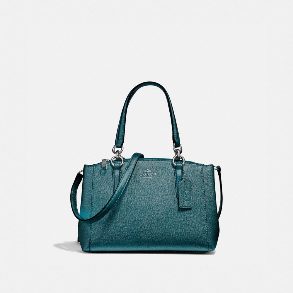 COACH F23337 - MINI CHRISTIE CARRYALL - BLACK-ANTIQUE-NICKEL/METALLIC-DARK-TEAL - HANDBAGS