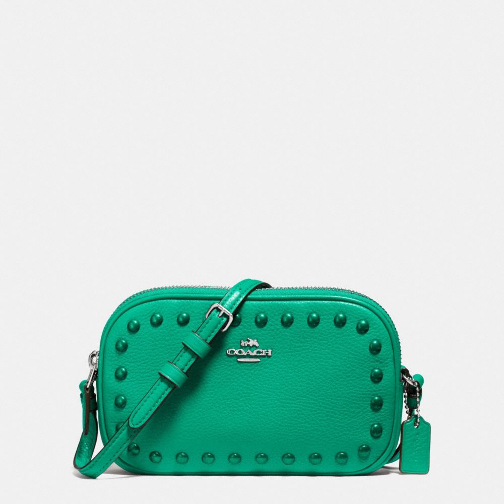 COACH F57587 CROSSBODY POUCH WITH ENAMEL STUDS SILVER/LEAF HANDBAGS