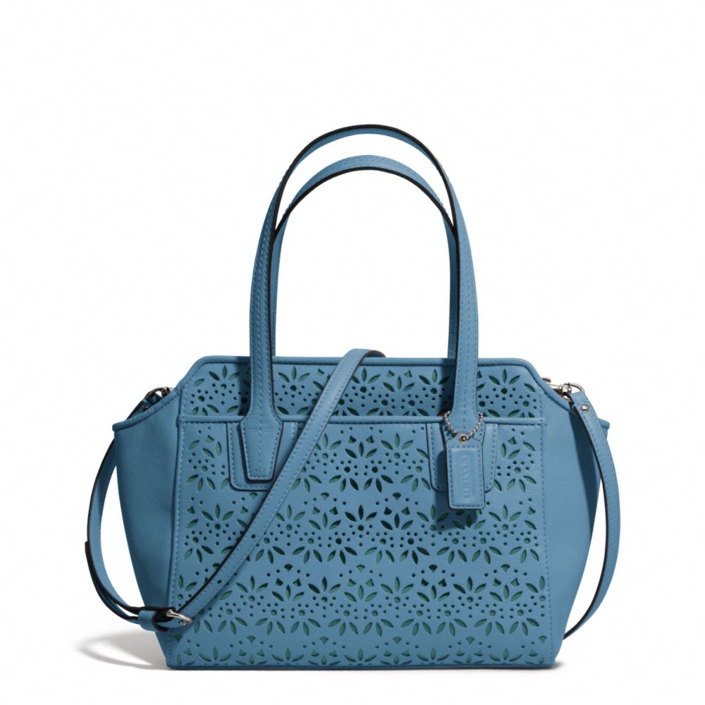 COACH F28081 TAYLOR EYELET LEATHER BETTE MINI TOTE CROSSBODY SILVER/DENIM HANDBAGS