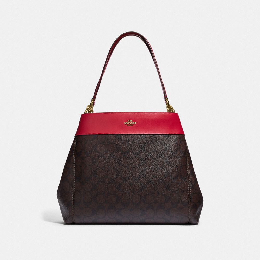 COACH F27972 LEXY SHOULDER BAG IN SIGNATURE CANVAS BROWN/TRUE-RED/LIGHT-GOLD