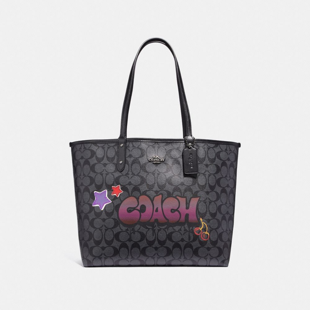 COACH F31500 - REVERSIBLE CITY TOTE IN SIGNATURE CANVAS WITH GRAFFITI - black-smoke-multi/black-antique-nickel - BAGS