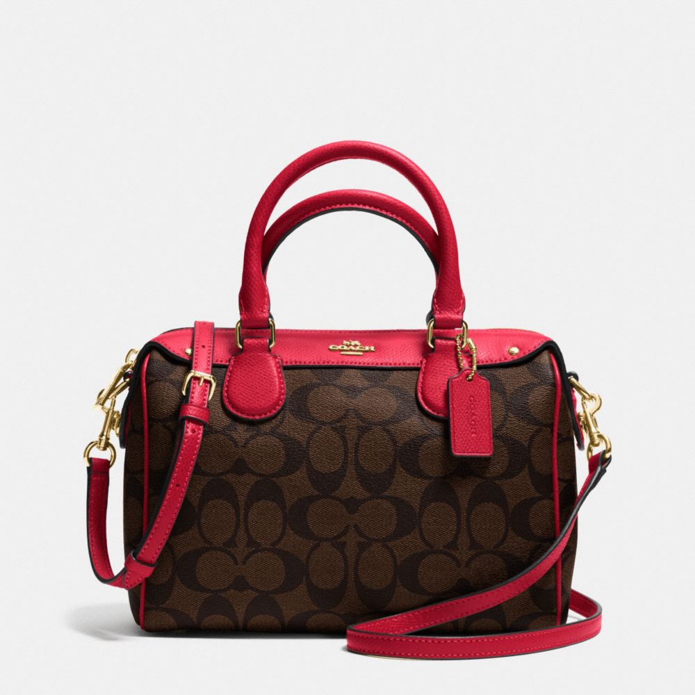 COACH F36702 - MINI BENNETT SATCHEL IN SIGNATURE - IMITATION GOLD/BROW TRUE RED (click the link before for more detail)