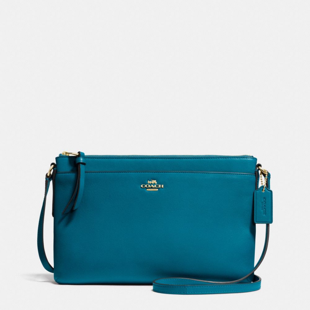 COACH F52638 - EAST/WEST SWINGPACK IN LEATHER - -LIGHT-GOLD/TEAL - HANDBAGS