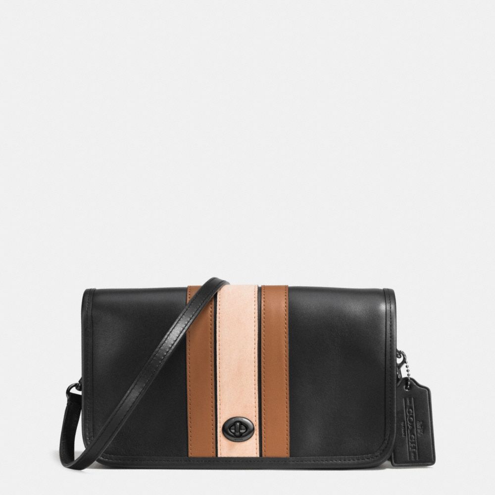 COACH F57461 75TH ANNIVERSARY STRIPE PENNY CROSSBODY IN GLOVETANNED CALF LEATHER BLACK-ANTIQUE-NICKEL/BLACK-SADDLE-MULTI