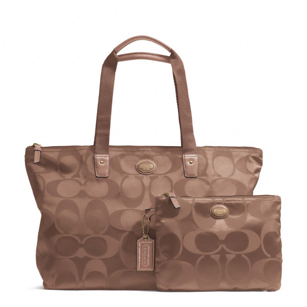 COACH F77321 - GETAWAY SIGNATURE NYLON PACKABLE WEEKENDER - BRASS/BRITISH-TAN - HANDBAGS