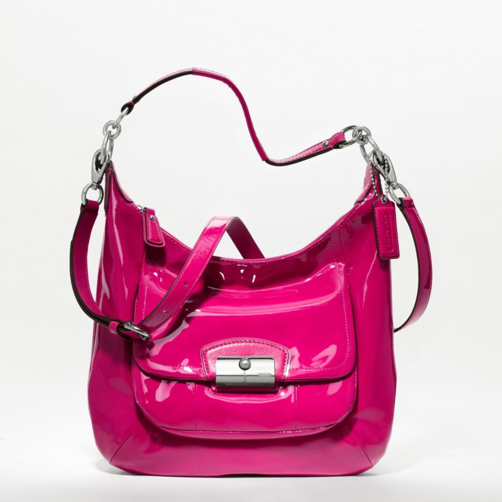 COACH F19299 - KRISTIN PATENT LEATHER HOBO - SILVER/RASPBERRY - HANDBAGS