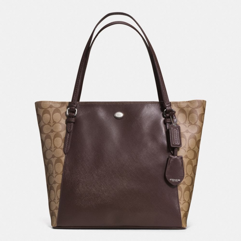 COACH F30301 - PEYTON COATED CANVAS SAFFIANO TOTE - SILVER/KHAKI/MAHOGANY - HANDBAGS