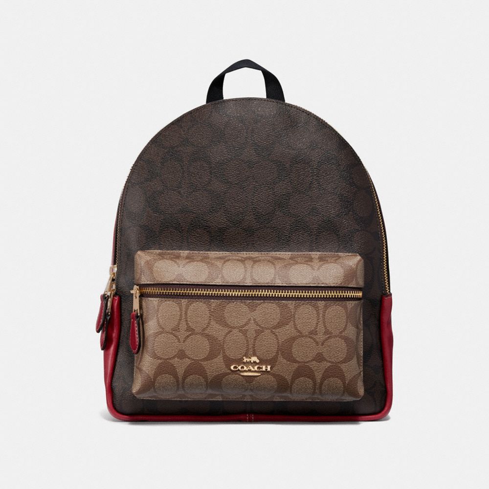 COACH F32111 - MEDIUM CHARLIE BACKPACK IN COLORBLOCK SIGNATURE CANVAS - KHAKI/BROWN-MULTI/LIGHT-GOLD - HANDBAGS