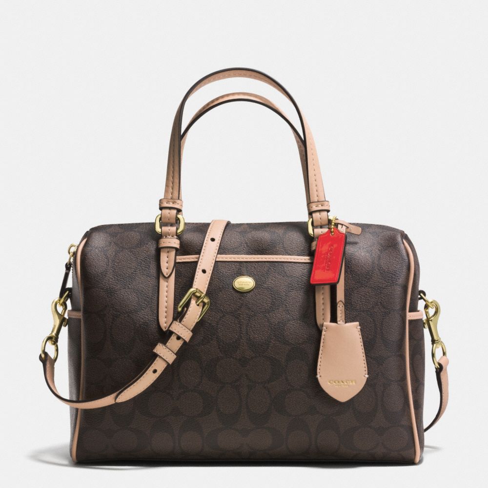 COACH F33323 - PEYTON SIGNATURE NANCY SATCHEL - BRASS/BROWN/TAN - HANDBAGS