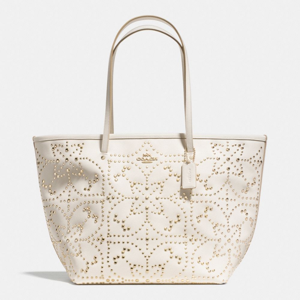 COACH F35163 - LARGE STREET TOTE IN MINI STUDDED LEATHER - LIGHT-GOLD/CHALK - HANDBAGS