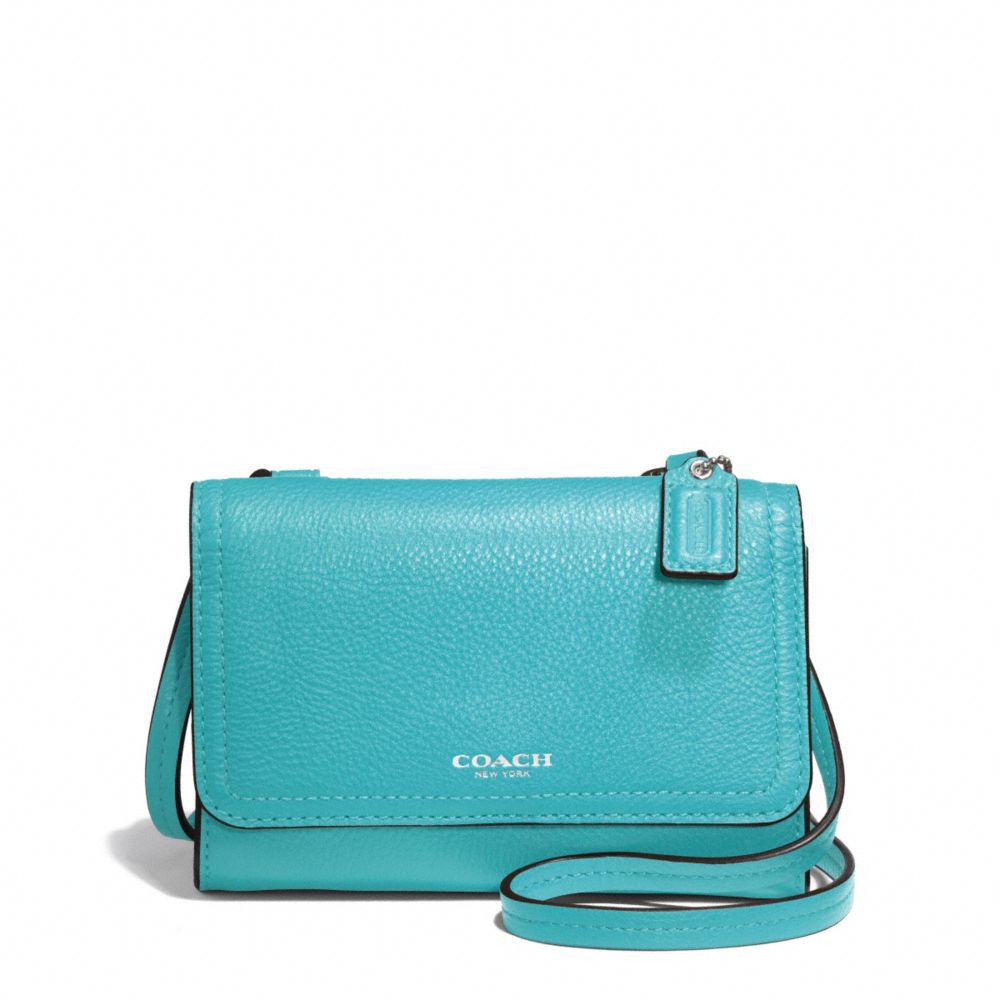 COACH F50928 - AVERY LEATHER PHONE CROSSBODY - SILVER/TURQUOISE (click the link before for more detail)