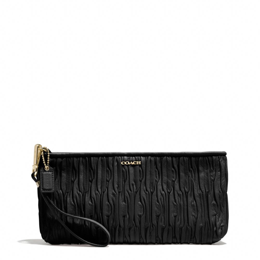 COACH F51741 - MADISON GATHERED LEATHER ZIP TOP CLUTCH - LIGHT-GOLD/BLACK - HANDBAGS