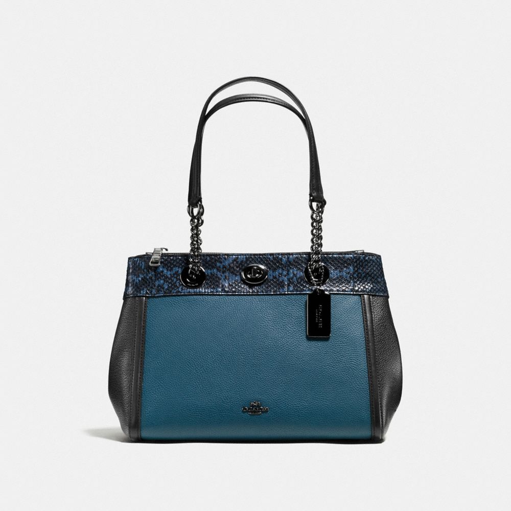 1. COACH f11874 - TURNLOCK EDIE CARRYALL IN COLORBLOCK WITH SNAKESKIN DETAIL - MINERAL/DARK GUNMETAL